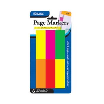 "BAZIC 80 Ct. 1"" X 3"" (25 x 76 mm) Neon Page Marker (6/Pack) - Page markers come in 5 Neon Colors. Available colors are Pink, Yellow, Orange, Red and Green. - These self stick page markers allow you to reposition with ease. - They are ideal for temporarily marking pages in books and reference materials. -80 sheets per pad. - Caution : Adhesive may mark some surfaces or lift inks. Colors may bleed when wet. Test before using. - Mark pages, write notes and organiza ideas! - Available in 24 pack/box or 144 pack/case." Case Pack 144