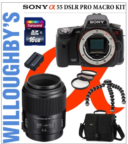 Sony Alpha SLT-A55V Digital SLR Camera Body + Sony SAL-100mm f/2.8 AF Macro Autofocus Lens + Smith-Victor Professional Lighting Kit + Transcend 16GB SDHC Memory Card + Sunpak 6600DX Digital Tripod & Much More! Willoughbys Est. 1898 Professional Macro Bundle